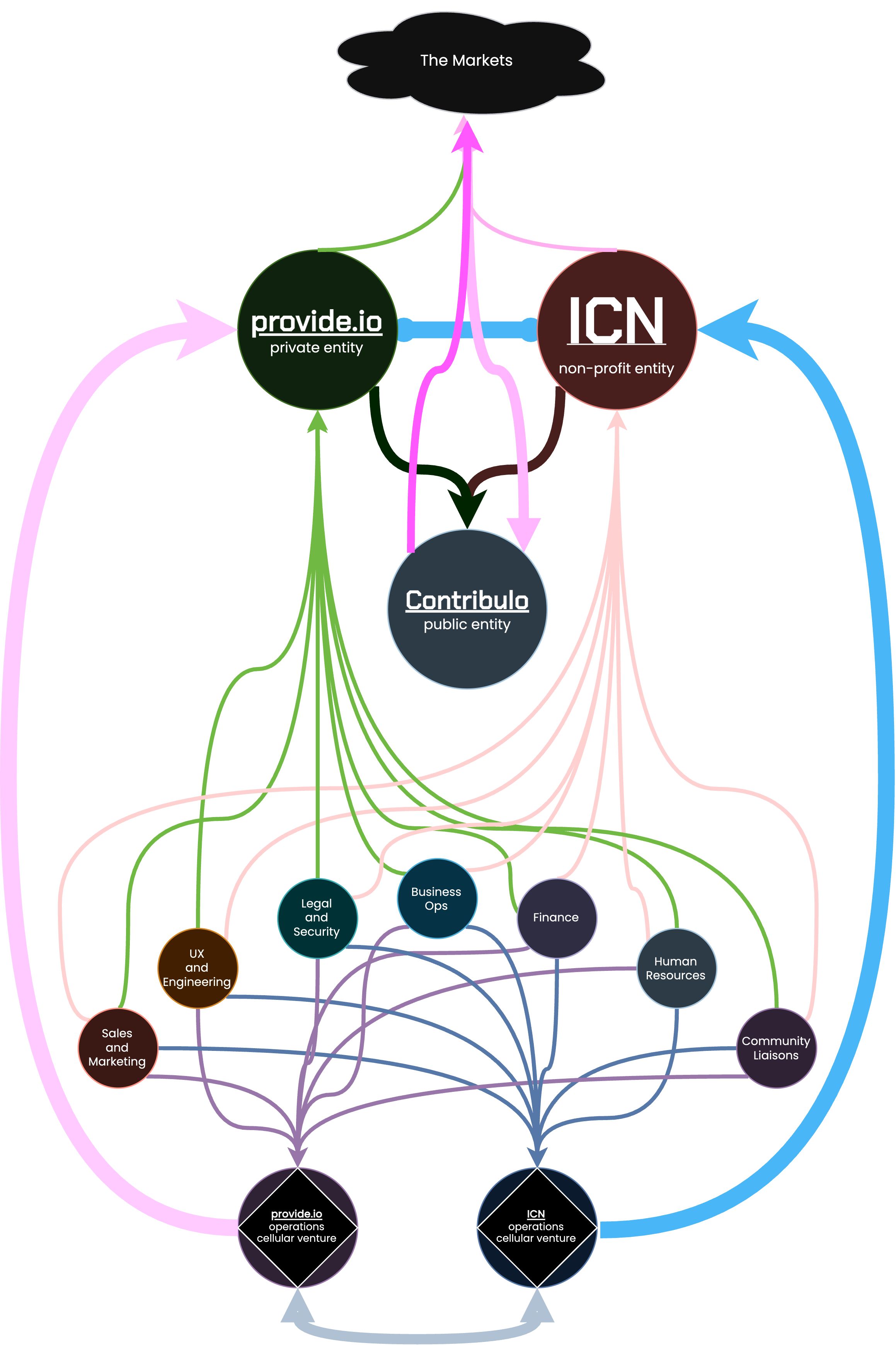 The Integrated Cooperative Network is designed to be the non-profit entity that facilitates the sourcing, and distribution, of resources to the local-businesses that provide.io incubates.